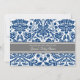 Personalized baby shower invitations in elegant and modern dark navy blue, gray and white classic and vintage floral damask pattern. Customizable with your text, contact us to request a color change.