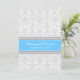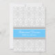 Custom rehearsal dinner party invitations in modern and elegant bright ocean malibu blue, grey and white classic and romantic floral damask vintage pattern. Personalize the text to create a unique invitation for your wedding rehearsal dinner. Contact us to request a colour change. Available in many matching wedding products.