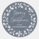 Blue-Grey Holly Wreath Merry Christmas Classic Round Sticker