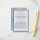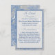 Design features an elegant blue and grey toned "marbling" effect as background to the shape displaying your text. Your heading is elegantly displayed at top centre in a silver-grey lettering. Your attire request is displayed beneath. The appearance of delicate ribbons overlay the design. Reverse side features the same marbling effect with the image of both ribbon and thrown rice. Designed to accompany the "Blue and Grey Marble" wedding suite.
