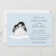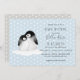Blue Grey Penguins Hearts Baby Shower Invitation