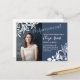 Unexpected date changes can happen. Send your understanding guests a date postponement postcard with blue-grey and white floral colour theme. These postponement announcement cards are perfect for any Bat Mitzvah, graduation, Quinceanera, teen birthday, anniversary, graduation, or wedding celebration.