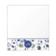 This fun soccer themed notepad features randomly arranged blue, grey & white soccer balls of varying sizes at its bottom edge with easy-to-personalize name & monogram on a coordinating blue circle pendant plus jersey number on one of the soccer balls - by katz_d_zynes