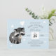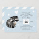 Blue Grey Stripes Raccoon Baby Shower Invitation