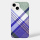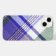 This case features a blue, grey, and white tartan plaid fabric design that is printed diagonally across the surface. It shows the weave, texture, and thread of the fabric. **Please note -- the image is printed on the case, which contains no actual fabric or cloth. It is intended to show the very thread and weave of fabric, which includes slight inconsistencies in colouring.*