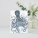 Blue Grey Vintage Octopus Illustration Postcard