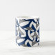 This volleyball team colours coffee mug can be customized with the coach's name on a white volleyball graphic on one side of the mug and the team's name, school name and sports season/year on a second white volleyball graphic on the other side - background is a grouping of blue, grey and white volleyballs arranged in an oversized mirrored pattern -- by katz_d_zynes | Girls’ volleyball team colours gifts can be found in my Volleyball school colours team spirit gifts collection >>> https://www.zazzle.com/collections/119253642051968072