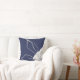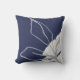Modern throw pillow features a minimalist artistic watercolor botanical leaf design in a blue and grey colour palette. This artistic composition is constructed from a simple illustration of organic leaves with a simple watercolor Memphis style design element in the lower right hand corner; a stylish botanical design. The grey design elements compliment the navy blue background.