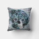 Blue grunge ohm sunflower skull throw pillow