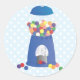 A fun blue gumball machine, completely unique and old-fashioned at the same time.