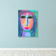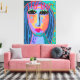My colourful abstract digital portrait of a woman with blue hair printed on wrapped canvas