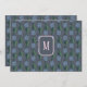 Moody, retro modern, 70s inspired flowers. A deep, blue-gray background with dusty blue and green, hand-drawn daisies, with little pops of bright magenta. Light pink monogram on the front and writing space on the back. Personalize by adding your own initial on the front.