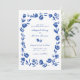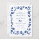 Blue Hand Drawn Whimsical Flower Border Wedding Invitation
