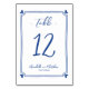 Blue Elegant Hand Drawn Whimsical Wedding Table Number. This adorable table number card features a subtle, hand-drawn frame with black hearts in each corner, creating a fun yet elegant design that gently encircles the table number. The mix of script and handwritten-style fonts adds a stylish and personal touch, making it both charming and sophisticated with a European, Italian, and French-inspired feel.