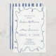 Blue Hand Written Pinstripes Whimsical Wedding Invitation