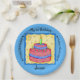 Celebrate the baby's first birthday (or customize to another year). These Happy Birthday cake art paper party plates are great for a 1st birthday or any birthday for sweets and well wishes and is personalized with the birthday boy's name. The whimsy art features red and blue birthday cake with 1 candle on a yellow background and whimsy blue border on a blue plate. The words “Happy Birthday” is on 2 side edges of the plate with the customizable words "my 1st birthday" at the top and the name at the bottom for a fun birthday party. This design is original art by Phyllis Dobbs.