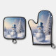 Beautiful Blue Hat Snowman Christmas Tree Oven Mitt & Pot Holder Set