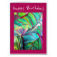 Tropical birthday with original watercolor painting of tropical "Blue Hawaii" foliage leaves, tropical palm plant. This original brightly coloured art features colours of green, blue, purple and burgundy. Leaf and foliage art.