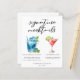 This chic signature mocktails menu sheet features simple black typography above 2 cute drinks and their ingredients for your summer wedding bar. A Blue Hawaiian Sunrise drink and non-alcoholic Cosmopolitan or Cranberry Cutie add a cool flair to your bar menu. Complete with the couple's names and date for their reception.