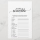 This blue heart black calligraphy "mommy or daddy" game is perfect for a rustic or modern baby shower. The front of the game card features "mommy or daddy?", and the back of the card features "baby word scramble". The minimalist design for a baby boy features modern typography and a subtle pastel blue heart. Personalize the front of the card with the name of the mom-to-be and baby shower date. You can personalize the game questions by clicking the "customize" button.
