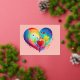 Pretty Colourful Heart Flowers Illustration Postcard