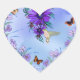 Blue heart with butterflies, flowers and hummingbird.