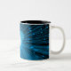 Modern design with a shining, sparkling blue and white heart on a glowing blue, white and black background. Mug with a blue, black and white customizable design for you to personalise with your own text, images and ideas. Created by Jess Perry using original photographs and digital techniques.