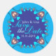 something different : full customizable Save the Date announcement sticker - very vibrant, fun, with love hearts on each order within a circle - Definitely a standout and memorable design