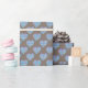 Blue hearts pattern on dark chocolate brown wrapping paper