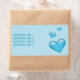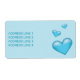 Destei's blue hearts in different sizes on a light blue background colour. There is also a personalizable text area.