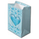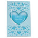 Destei's blue hearts in different sizes on a light blue background colour. There is also a personalizable text area over the big heart in the middle.