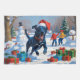 A heartwarming holiday illustration featuring a cheerful dog playing in the snow, wearing a Santa hat and surrounded by colourful gift boxes. In the background, children build a snowman beside a snow-covered Christmas tree, creating a joyful winter wonderland. Perfect for spreading holiday cheer and capturing the magic of Christmas.
