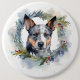 Blue Heeler Christmas Wreath Festive Pup 6 Inch Round Button