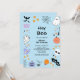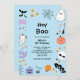 Blue Hey Boo Cute Ghost Boy Halloween 5th Birthday Invitation.