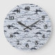 Blue Hipster Moustaches Large Clock