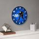 Game time! This cool clock features the black and white outline of a hockey player on the ice, over an abstract blue background. You can customize this clock with two initials or a jersey number to make it the perfect gift!