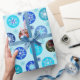 This photo wrapping paper has 8 photo slots for you to fill with a blue Snowflakes holiday pattern. This pattern has two sayings “Let it Snow” and “Feeling Frosty”. There are 7 different snowflakes. 5 have coloured fills and two are one colour. You can use 1-8 photos to fill in the design. The photos will be 3 ½” when printed.