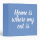 Home is where my cat is white script blue binder. Perfect for the cat lover.