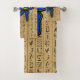 Bath towel set with the Ancient Egyptian symbol, the Horus eye on Hieroglyphs. This design features the Horus Eye in blue, yellow and black outlines on top of a Hieroglyphs background.