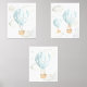 Add the finishing touches to your baby’s nursery or child’s bedroom with these gorgeous art prints! Design features blue hot air balloon, animals (bunny, bear, elephant), moon, clouds and stars.