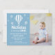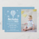 Blue Hot Air Balloons Baby's First Birthday Photo Invitation