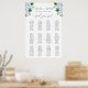 This seating chart poster features a blue hydrangea floral design and 12 tables layout. The script text heading is an image that cannot be edited. The heading image can be resized to fit any poster size. All of the other text is fully editable. For more advanced customization of this design, simply select the "Customize It" button above.