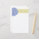 Blue hydrangea art stationary. Linen paper, 8x5 has floral illustration and yellow "ribbon" to hold name template. Delete line of text to buy blank.