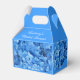 Bridal shower gift box with bright blue hydrangea flowers and a handle. Put the name of the bride-to-be on the top of this bold blue favour, in white text. Pretty, realistic flower print all around the sides.