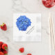 Blue hydrangea custom paper napkins. Use this pretty, blue floral design for bridal showers, wedding receptions, or any event. Customize two lines of text. Angled design on coined napkins.