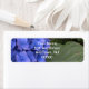 Close-up of pretty Blue Hydrangea floral with green leaves. Name and address in white typography. Original Photography by TamiraZDesigns.