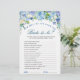 Blue Hydrangea Floral Bridal Shower Game