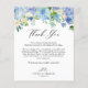 Send thanks with this customizable thank you card. It features a watercolour garland of blue hydrangea flowers and roses, ivory roses, and greenery. Personalize these hydrangea thank you cards with your message, name, and date. These floral thank you cards are perfect for weddings, baby showers, bridal showers, birthdays, and so much more. Matching items are available.