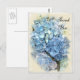Add your own personal message of appreciation and gratitude to the elegant Blue Hydrangea Flower Thank You Note Postcard. This pretty custom flowery thank you card features a digitally painted floral photograph of a blue hydrangea blossom with an off white cream coloured background. Perfect for use after a classy garden party bridal shower or marriage ceremony and reception.