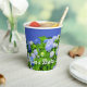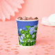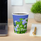 Bridal shower floral paper cups with blue hydrangea flowers. Green shrubs full of beautiful blue blooms wrap around paper cups to use at a bridal shower, birthday party, or any event with a garden theme. Include text along the bottom such as, "Alyssa's bridal shower", or remove wording to buy blank.